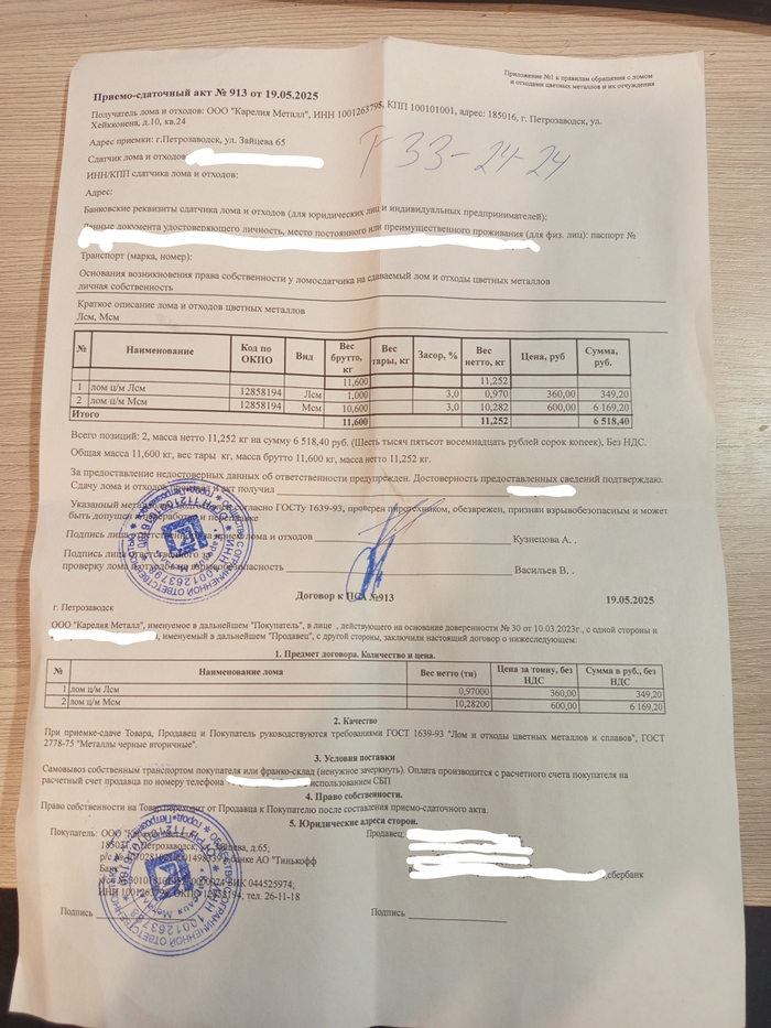 К слову - сдаю туда и я и отец и дед сдавал уже лет 10-15 и все было хорошечно. Бумажка, деньги наликом дают, не обвешивают, отличная приемка была. Но вот лет 5 назад пошла мода на безнал и тут началось... Сначала задержка в день, потом как то в 3, потом уже неделя, потом две. Ну и крайний раз решил я сдать медяху все равно им - пожадничал немного, ибо по Петрозаводску цена выше чем у остальных (как я тогда думал), да и вроде как официальная бумага, кинуть не должны. Сдал 19 мая, сказали ждать месяц. Ну ладно....
