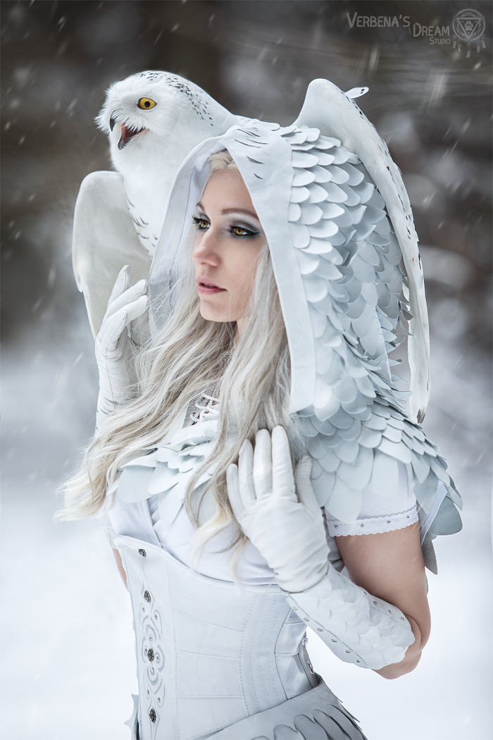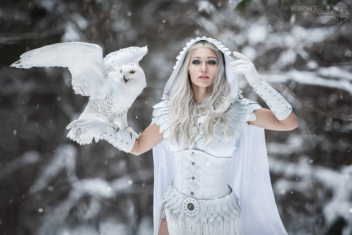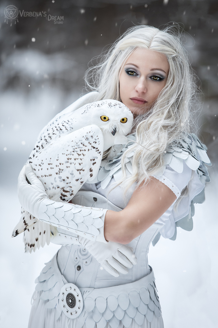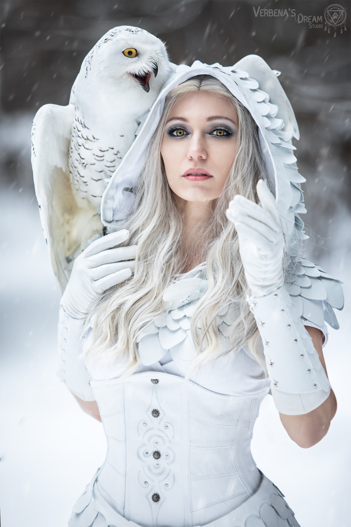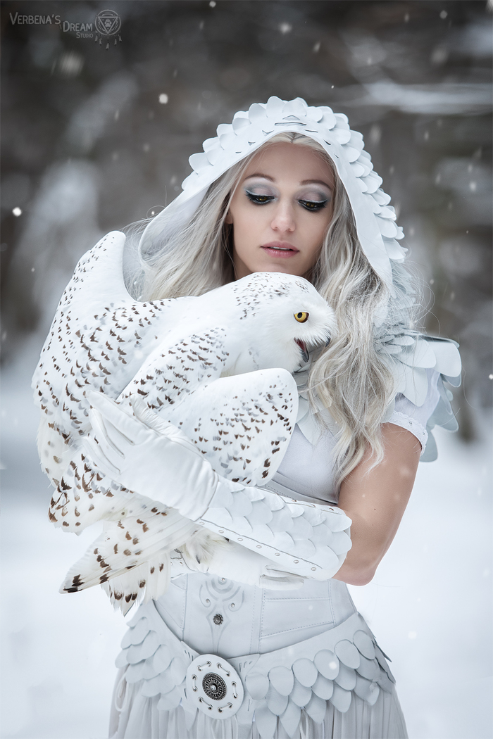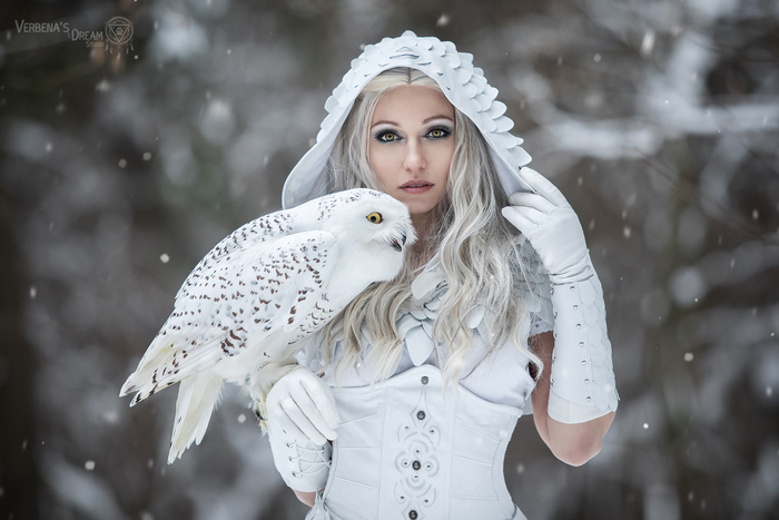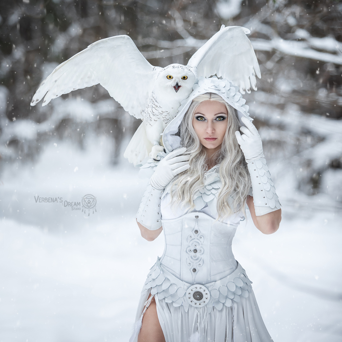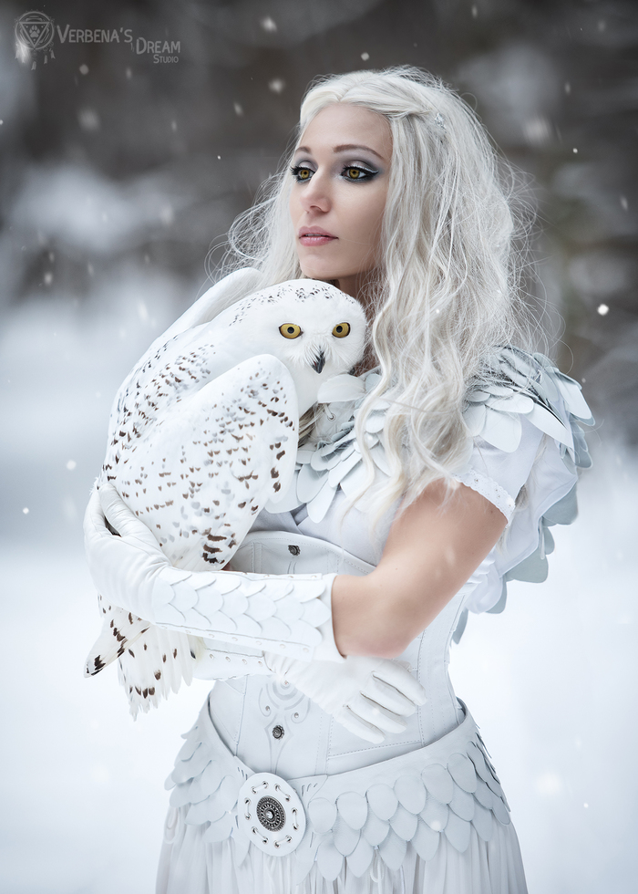 Новый фотопроект от Дарьи Лефлер, на этот раз девушка воплотила образ фэнтезийной беовой Снегурочки со своим ручным зверем.