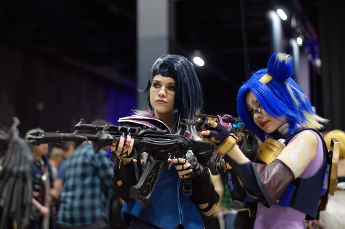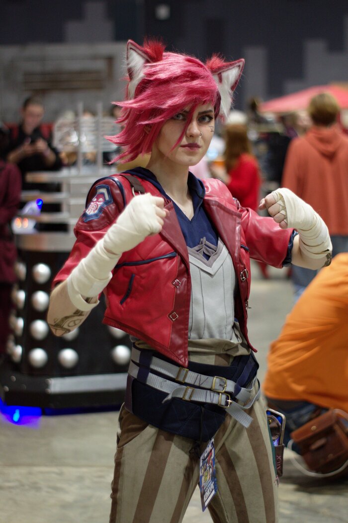 Далее, Вай (V) из League of Legends ( думаю, что косплеер больше ориентировалась на сериал Arcane, который снят по мотивам данной игры - но не уверен).