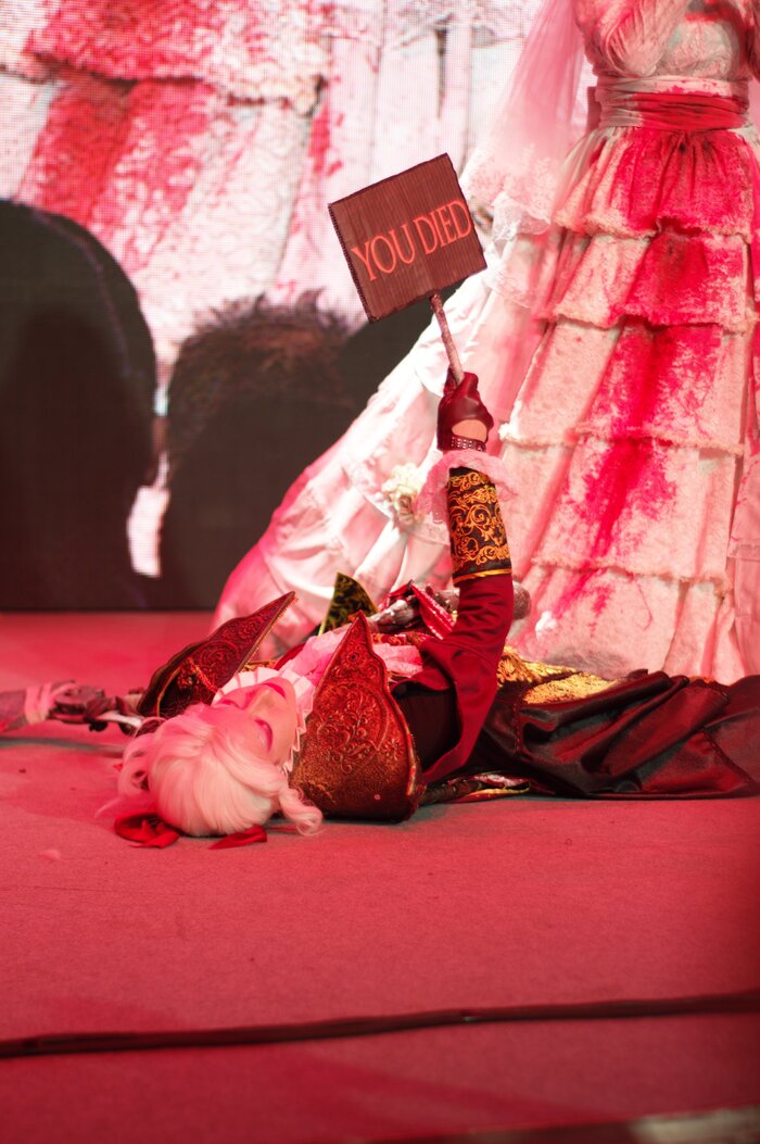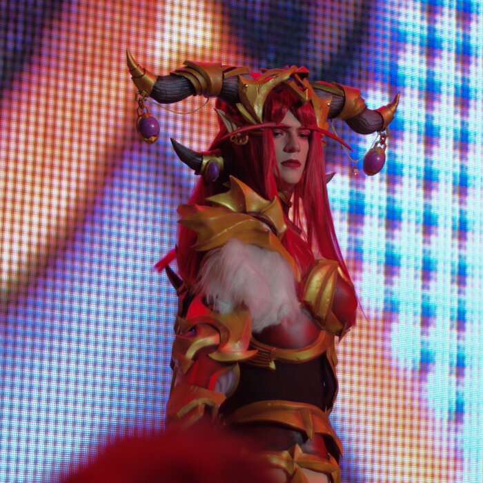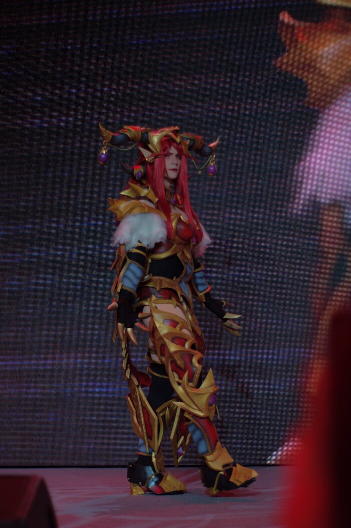 Далее, я честно не знаю кто это и откуда. но костюм у нее был монументальнейший, он в нем возвышалась над обычными смертыми на голову минимум. Понял только что этот образ имел отношение к World of Warcraft. Ну и еще она запомнилась песней, которая шла под ее выступление, которая была написана под мотив Холодного сердца и в которой пелось: "Задонать/И забудь/Этих денег уже не вернуть".
