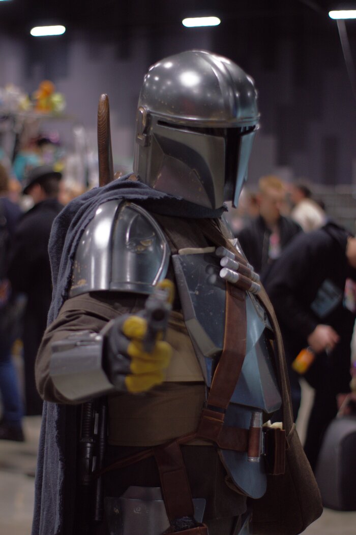 Новое дыхание (или посмертный всхлип?) франшизы "Звездные войны": Дин Джарин из сериала "Мандалорец". (вообще на фестивале было много людей в мандалорской броне, они называли себя 501 легон и тусовались у своего же стенда имени себя. Когда толпой куда-то шли - выглядело это всегда эпично).