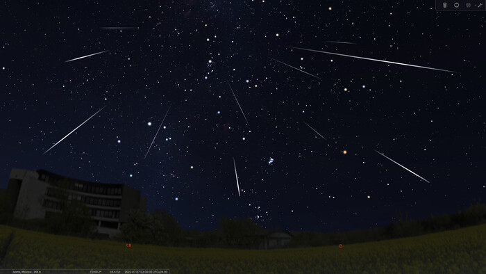 Продолжает набирать активность метеорный поток Персеиды — самый заметный и известный "звездный дождь" северного неба. Считается, что Персеиды видны в августе, но отдельные метеоры этого потока начинают прочерчивать небо в середине июля, а к концу месяца ежечасно можно наблюдать десятки "падающих звезд". Главное, выбрать темное для наблюдений место и научиться осматривать небо блуждающим взглядом — не фиксируя внимания на какой-то одной звезде.