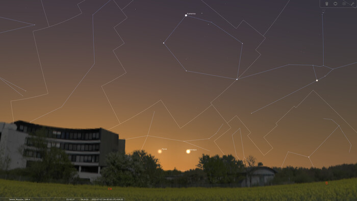 Оба светила будут расположены в созвездии Близнецов и очень невысоко над горизонтом. Выбирать для наблюдений необходимо место с максимально открытым горизонтом в северо-восточном направлении.