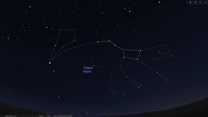 К счастью, ныне созвездие носит название связанное с древнегреческим мифом о Нимфе Каллисто, превращенной в Медведицу, её сыне Арктуре и сопровождающей Арктура своре охотничьих псов. Но главная звезда созвездия так и осталась “при дворе короля Карла I”, и уже никто не помнит, как она называлась прежде.