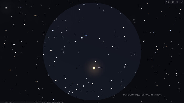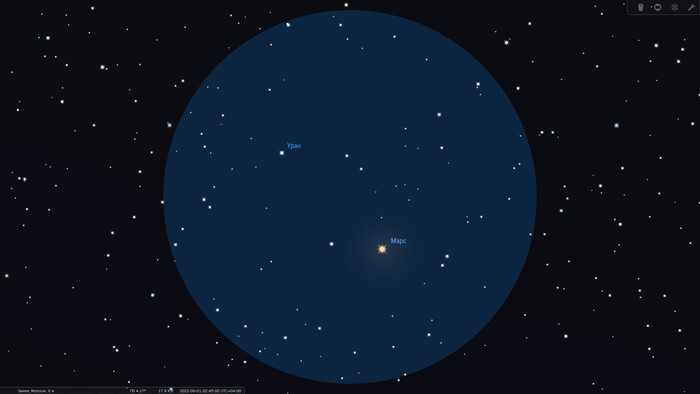 Ночь с 31 июля на 1 августа 2022. Марс в соединении с Ураном