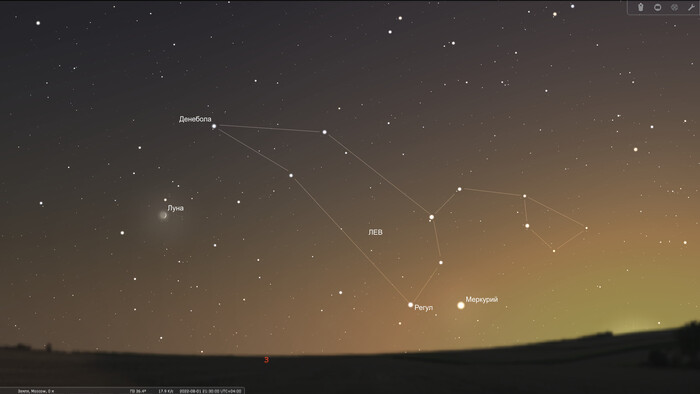 Ночь с 1 на 2 августа 2022. Луна вблизи беты Льва
