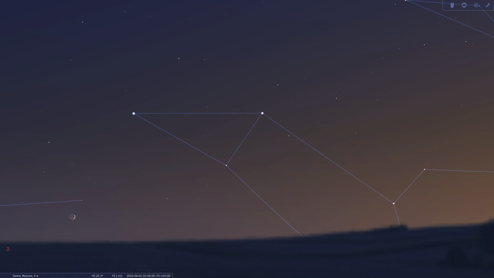Луна будет видна на небе очень низко. Хотите увидеть её, забирайтесь повыше, или ищите открытое место, где ничто не будет загораживать её. Фаза Луны составит 75% — кому-то может показаться, что она почти полная, хотя до полнолуния еще несколько дней. Оно случится в ночь с 11 на 12 августа, и будет создавать существенную помеху для наблюдателей метеорного потока Персеиды, ведь падающие звезды при яркой полной Луне ловятся так себе.