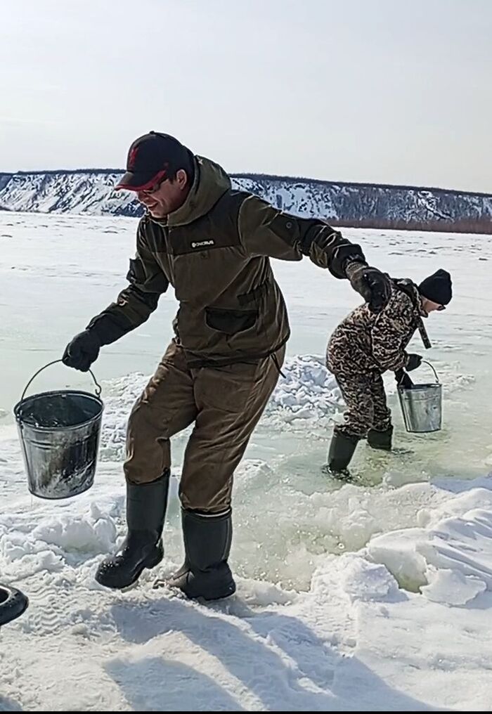 Мы решили поместить ее в ведро, чтобы унести в лес к протоке, но она выпрыгивала из ведра.