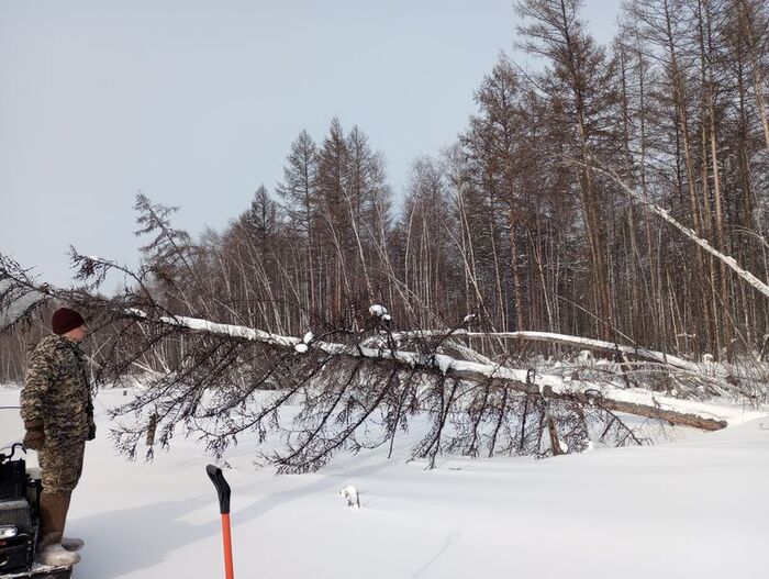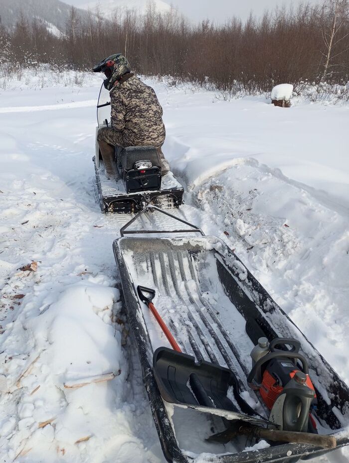 Плюс такие деревья при валке сразу падают на путик снегохода, что облегчает их дальнейшую погрузку.