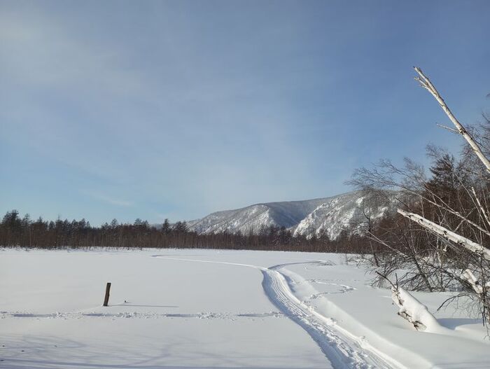 Обожаю развалиться в нартах во весь рост и наслаждаться свежим воздухом. Для Жени, конечно, поезди на снегоходе уже не радость и что-то приятное, как это было раньше, но хотя бы кто-то из нас получает позитивные эмоции от поездки на снегоходе. Хотя для Жени позитивные эмоции от поездки на снегоходе связаны только с моими падениями из снегохода или нарт. :)