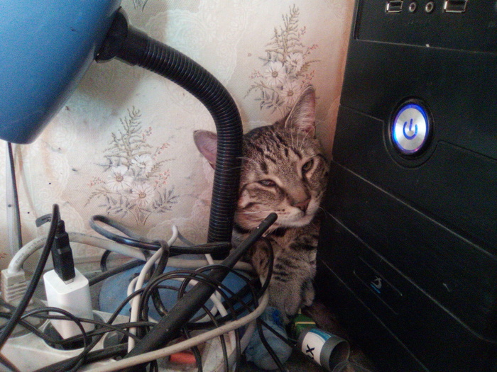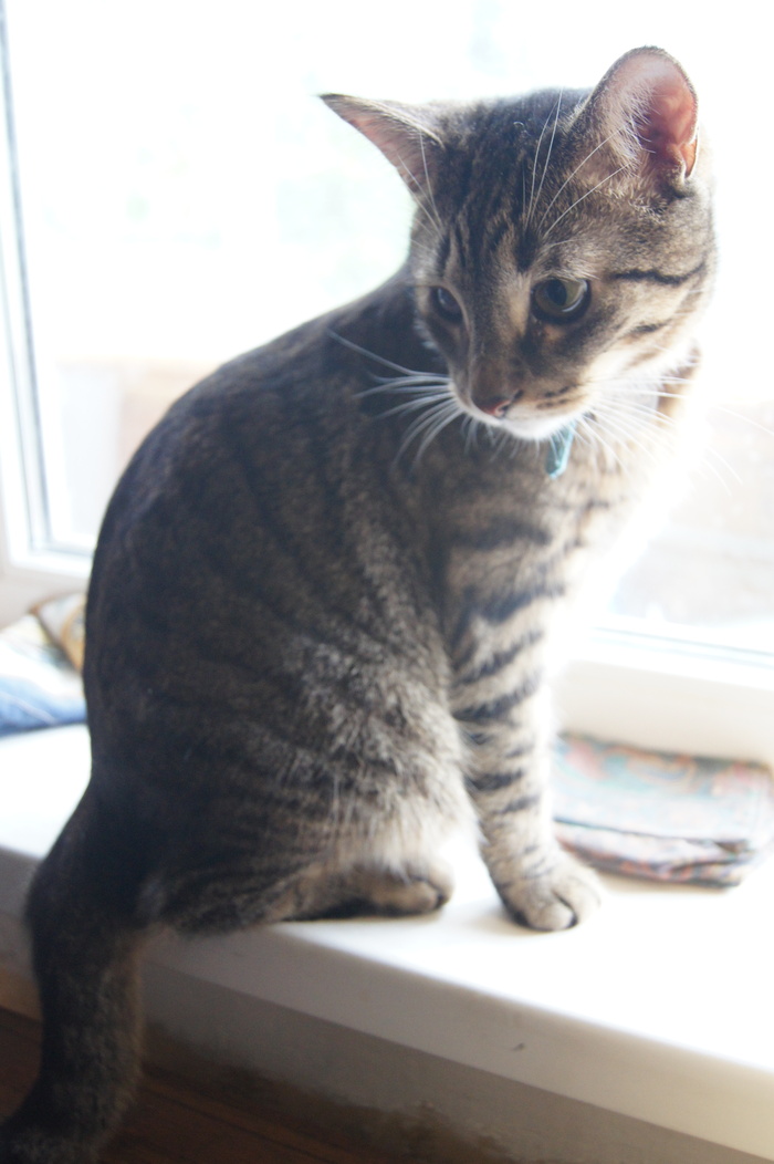 Кот какое-то время жил у нее, был несколько пролечен. Но не ужился уже с ее домашними зверьми (там у всех свои характеры), и после некоторых поисков оказался у нас. Точнее, мы сперва согласились и еще думали...