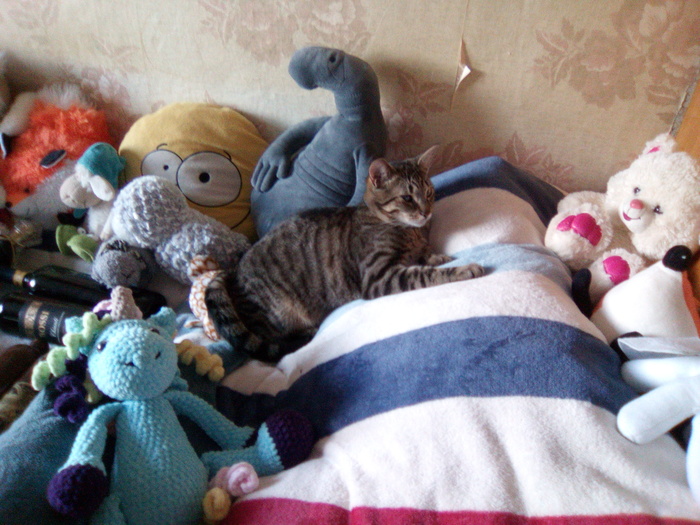 Позже кот привык, заматерел, и начал проявлять иные черты своего нрава. Для начала, он выстроил иерархию, как подобает бенгалу, и попытался утвердиться на её вершине. Не вышло: огреб от жены, получил разъяснительную работу и однозначно записал ее в кошки-мамы. Только ее без вопросов и слушается.