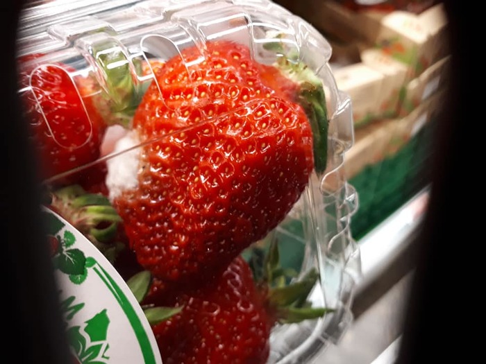Утро 16 мая. Магазин МЕТРО в Москве. Наисвежайшая клубника из Крыма Фактически только с грядки, изготовили (всегда вызывает вопрос, что под этим понимать-наверное собрали) 15 мая и она уже на прилавке. Вот это логистика. А запах!!!Начал любоваться этой красотой в предчувствии получения удовольствия.На фото-результаты этого любования. Кто не разглядит-комментирую. Это плесень. И это не в одной упаковке.