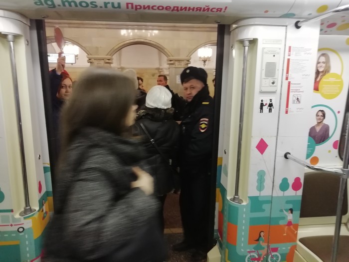 Так вот весело, в приятной атмосфере "благоухающих садов Семирамиды" мы проехали ещё пару станций, и, о чудо! В вагон заходят представители власти (которые, кстати, получают зарплату с наших налогов)