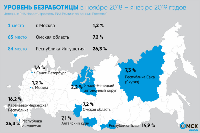 Согласно статистических сведений безработица в Москве составила 1,2% от численности экономически активного населения Москвы по состоянию на январь 2019 года.