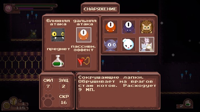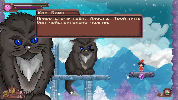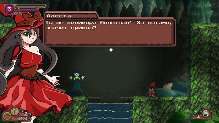 МТР, если кто не знает, это Молодой Талантливый Разработчик. Почти как МТА - Молодой Талантливый Автор с романами про попаданцев на Самиздате, но у МТР не всё уж столь тленно, глухо и безнадёжно. То бишь, у МТР, как мне видится, есть шанс, доведя своё детище до ума, начать питаться чем-нибудь помимо "великого триумвирата" (пельмени, яичница, макароны). Не могу с точностью сказать, что побудило меня купить игру, стоило только ей выйтив Steam. Всё-таки, метроидвании - не вполне мой жанр. Я больше по стратегиям и РПГ, да и то пошаговым, потому, вместо рук у меня иной раз будто отрастают клешни, а в платформерах необходимо сноровка. Возможно, свою роль сыграло желание поддержать МТА, ведь всегда приятно видеть завершённые проекты. Не исключено, меня привлёкла приятная пиксельная графика, львиная доля коей забила монитор ведьмами и котиками. А разве можно не любить ведьм и котиков? Есть вариант, всё произошло и сугубо по желанию левой пятки.