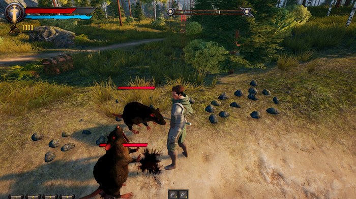 1. Доделали первую локацию до конца. Наполнили ее контентом и врагами. Еще, правда, некоторые мелкие модели докидываем на нее, по мере их создания) Врагов тоже еще не всех закинули. У нас три новых противника для первой локации: крысы, кабаны и летучие мыши. Крысы уже есть (на видео не попали), а вот кабан и "бэтмэн" ждут добавления в проект.