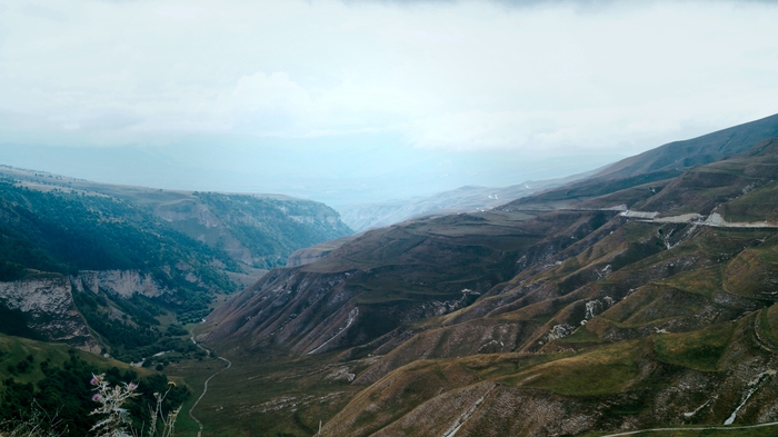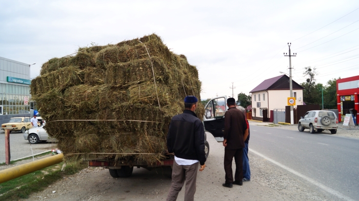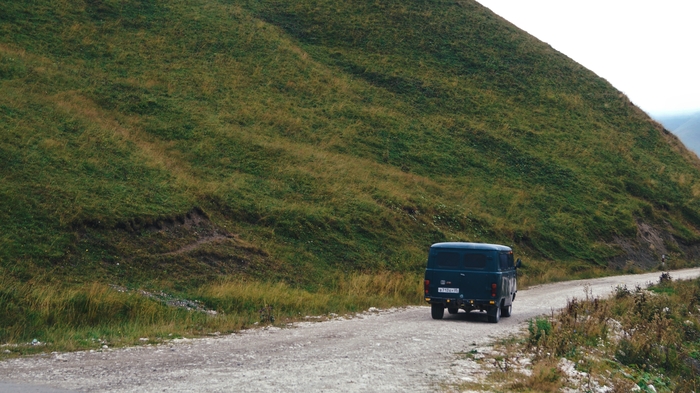 Обратно я добиралась на попутках. Часть пути - с веселой шумной молодежью, бесстрашно летевшей по серпантину, но сворачивающих раньше, чем было необходимо мне. А потому, выйдя на развилке, я немного-таки прошлась пешком. Моросил дождь и видимость ухудшалась. Мне повезло! Парочка работяг, везущих навоз (колоритно как!), с ветерком, довезли меня до Ведено.