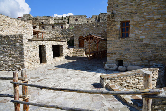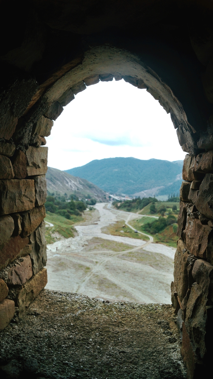 Южнее «города мёртвых» можно увидеть руины древнего селения, которое тоже находилось под защитой дозорных башен. Одна из башен с бойницами, развёрнутыми в сторону Грузии, сохранилась по сей день.