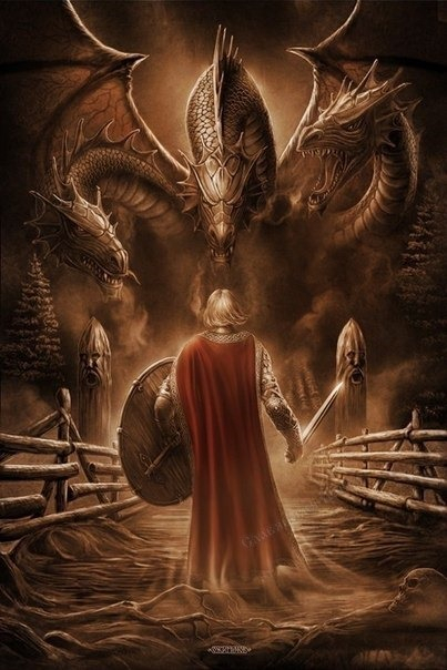 Поэтому в незамысловатом сюжете с битвой богатыря с многоголовым змеем на раскаленном мосту через смрадную реку обыгрывается типичная для многих европейских народов история о реке Смерти, отделяющей наш мир от загробного царства и чудовище, охраняющем этот переход.