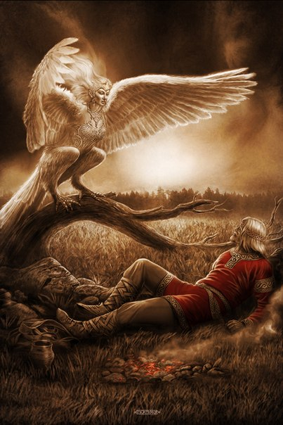Что касается обитающей в раю птицы Сирин, поющей прекрасные, разгоняющие печаль песни, то ее тоже позаимствовали у греков. Правда, у эллинов были сирены, которых назвать райскими птицами нельзя было даже с натяжкой. Вторая человекоподобная райская птица, Алконост, поющая печальные песни, появилась благодаря греческому мифу об Алкионе, превращенном Зевсом в зимородка.