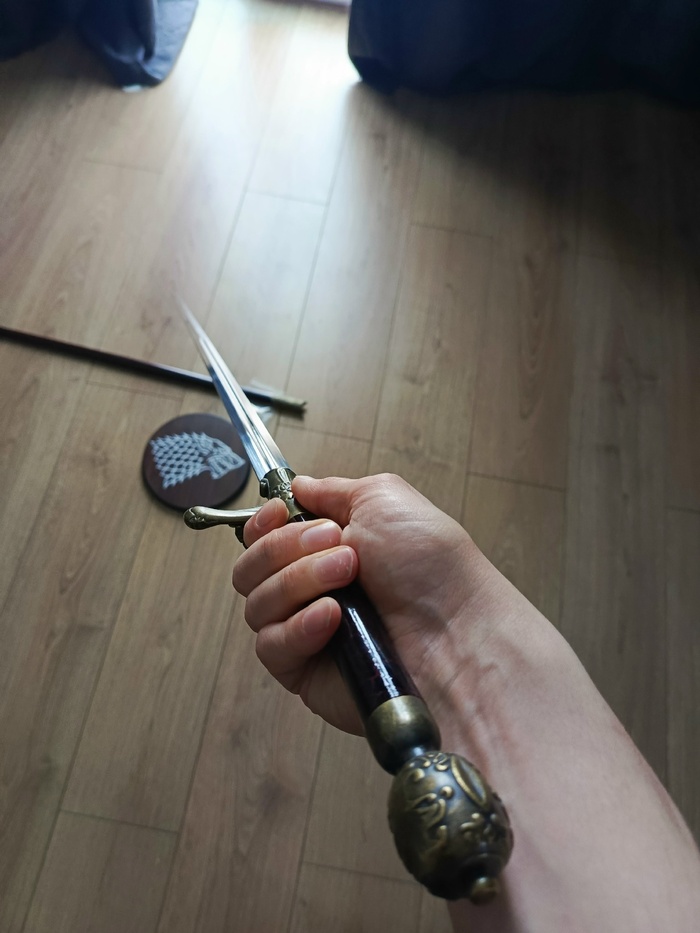 "Василий Змееборец. Василий могучий, сильный богатырь, да, но всё благодаря мечу. Без своего кладенца он не лучше любого другого юноши. Меч всю работу за него выполняет, а он знай командует. Без меча этого он ничто, вот поэтому так сильно боится оставить его без присмотра, видите?".