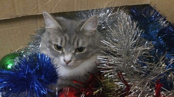 Привезла ёлку. Поставила кресковину, вкусно пахнет елью...... И прикинте коту тож понравилось. Пришел медленно, смотрит то на меня, то на елку. Пошла я за игрушками и кот такой опана! Надо жрать мешуру! Не понимаю почему коты жрут мешуру. Но это не самое интересное. Я повесила мешуру по выше и погуглила оказывается мой кот не один такой. Читай те дальше. Я посмотрелпа на эту мешуру, покрутила в руках и попробывала на вкус. Гадость то какая! Чем коту она нравится?