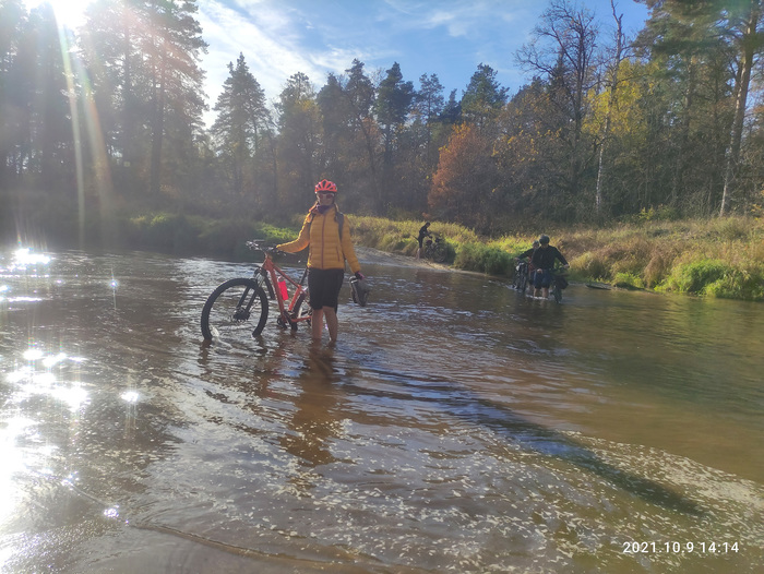 На 37_м километре у нас брод через речку Поля, до которого мы вскоре и докатили. Решили через речку перейти, т.к. на призовые места не претендовали, да и к ночи по прогнозу 0 градусов. Мокрые ноги в такую погоду совсем не к стати (мокрой спины и жопы мне было вполне достаточно)