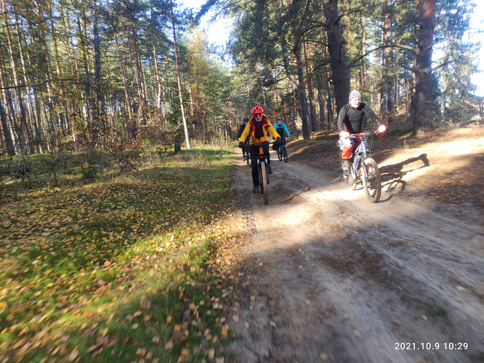 Перед стартом встречаю довольно много знакомых, тоже жаждущих песков и болот )) И вот наконец 11 часов мы стартуем! Народ с первых километров начинает растягиваться по лесу. Вскоре догоняю Иру. Она едет примерно в том же темпе, поэтому решили ехать сообща.