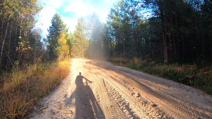 К 16 ч выкатываем неожиданно на асфальт. Ура! Можно отдохнуть от этих песчаников! Хотя ехать всё равно тяжеловато для асфальта. Может я просто привык к шоссейнику, а может и подустал. Но счастье длиться не долго, и вскоре мы опять сворачиваем в пески и болота))