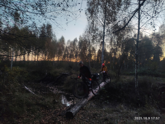 На 190_м км нас ждало последнее испытание — проход через болото. В темноте форсировать эту преграду удалось не сразу, минут 15 мы ходили вокруг этих говен, высказывая слова благодарности оргам за такой чудесный подарок перед финишем)) Но, слегка замочив ноги, всё же прошли. Где-то среди этих болот я окончательно посеял свою педаль и дальше поехал без нее.