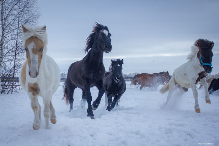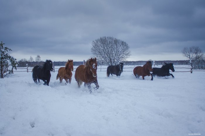 Если о жизни на конюшне в целом, лошади с утра сами бегут на поле, где часть из них стоят на привязи (те, кто склонен к побегам в далекие края), а остальные мирно бродят вокруг. По краю поля проходит канава, в которой кони пьют и плескаются в жару. Вечером отвязывают всех и лошади прибегают домой, в конюшне их ждет порция свежескошенной травы и соль (летом это особенно важно). В жаркие дни все происходит точно также, но день и ночь меняются местами. При этом днем каждые 30 минут на поле приходят проверить коней, а в ночное хозяйка и вовсе ночует в машине прямо там.