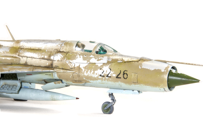 Первым. делом изготовил внутренности кабины, кресло, приборную панель нос самолёта и сопло. Потом грунт и сверху аллюминий и те места где полированный аллюминий. Самый лучший вариант, по собственным тестам оказался AK INTERACTIVE XTREME METAL. На Аллюминевую базу пятнами нанёс маскирующую жидкость Drawing gum и сверху слой более светлого аллюминия для эффекта старого металла. Слой футуры для закрепления и нанёс лак, сверху два смешанных слоя краски Оливковый светлый и немного смеси зеленого и песочного, на донышко "лёгкий голубой". Протёр лак для облезания краски. Подвёл кисточкой сколы, пролил прошивку. Под конец масло, немного пигментов. Перед тем как залить последний слой матового лака, защитил места облезания для металла жижей Drawing gum, для того чтобы на металле остался блеск. Собственно последнее, это покраска сопла снаружи, несколько слоёв, сталь, что то похожее на сталь, титан золотистый, тёмный металл(black metal Burzum), и разносол для выхлопа плюс масло.