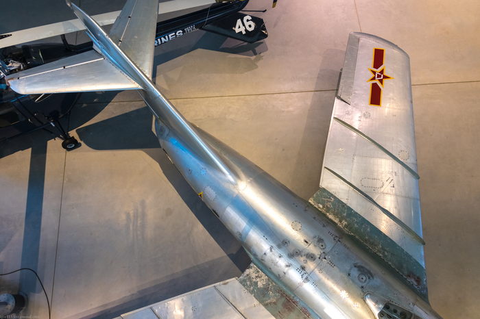 Истребитель первого поколения США. В отличии от МиГ-15, у этого самолета пушки куда более скромные по калибру - всего-лишь 12.7мм (у миг-15бис 2 x 23мм и 1 x 37мм), зато у него их целых 6 - M3 Browning. А также у них прекрасная баллистика полета пуль, из-за чего против истребителей это страшное оружие.