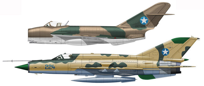 Сомалийские МиГ-17Ф и МиГ-21МФ.