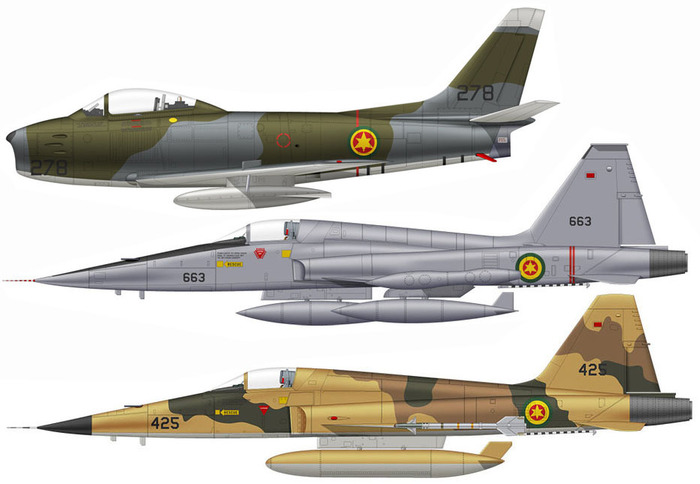 Эфиопский "Сэйбр" и два F-5A. Нижний вооружен ракетами "Сайдуиндер".
