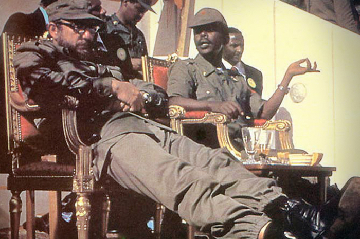 Фидель Кастро и Менгисту Хайле Мариам на параде, устроенном в честь кубинского лидера .