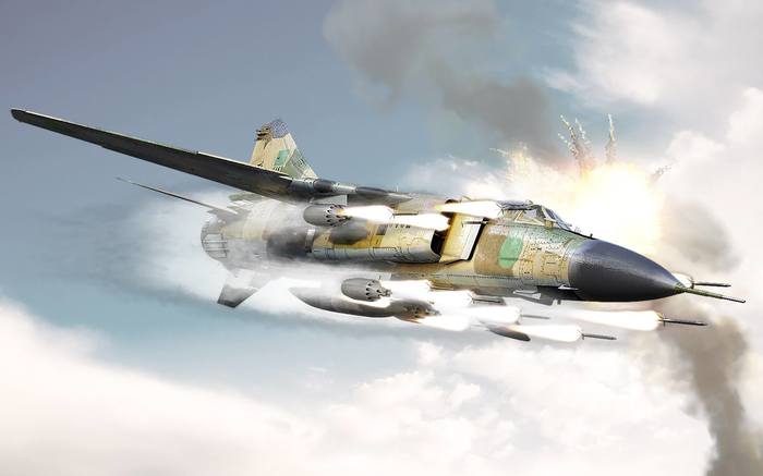 Особой строкой в истории МиГ-23 проходит участие в войне в Афганистане. На начальном этапе кампании эти самолеты не использовались, и только спустя четыре года, когда стало очевидно, что наличных сил ВВС Туркестанского и Среднеазиатского военных округов явно не хватает для решения всех задач, стоящих перед авиацией 40-й армии, «двадцать третьи» стали активными участниками операций в рамках деятельности Ограниченного контингента советских войск (подробнее об этом читайте в статье «Истребители МиГ-23 В Афганистане» на нашем портале). Причем в Афганистане применялись не только модификации МиГ-23 в варианте фронтового истребителя, но и в варианте истребителя-бомбардировщика, которая называлась МиГ-27.