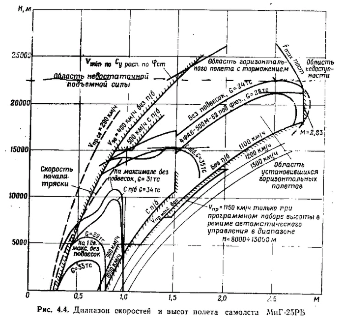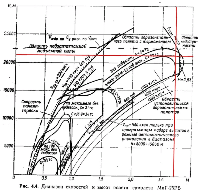 Так что по максималу у нас остается ограничение по 2.7М, а по высоте 22000м. На которых мы, разумеется, летать не будем, поскольку это предельные режимы.