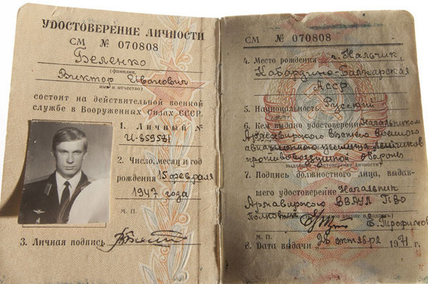 Удостоверение Виктора Беленко. Фото: Commons.wikimedia.org