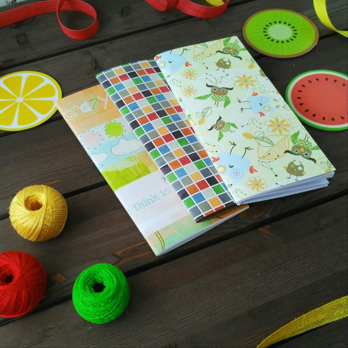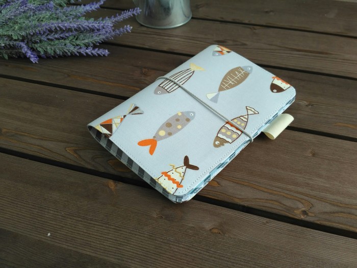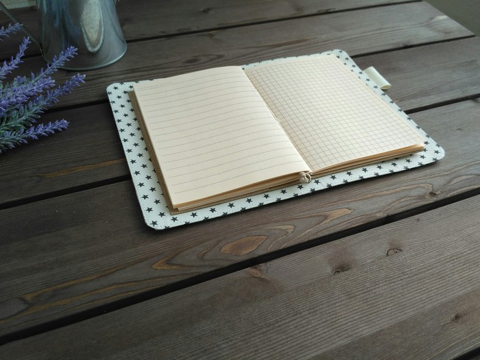 Увлеклась изготовлением блокнотов мидори. Традиционно они представляют из себя узкий длинный блокнот в мягкой кожаной обложке с тетрадками, скрепленными резинками. Естественно, по желанию можно менять размер на любой другой, сохранив общую идею крепления тетрадок, и это тоже будет вариация мидори. Я шью обложки для этих блокнотов из ткани, уплотняя внутри спец.материалом, что делает их мягкими, гибкими, но упругими. Тетрадки сшиваю как из чисто белых листов плотностью 140-160г, так и из листов с разными видами линовки (делаю макет в Illustrator), а также из крафт-бумаги плотностью до 200г. Помимо тетрадок, дополняю блокнот холдером с обычными карманами и карманом для мелочей на молнии.