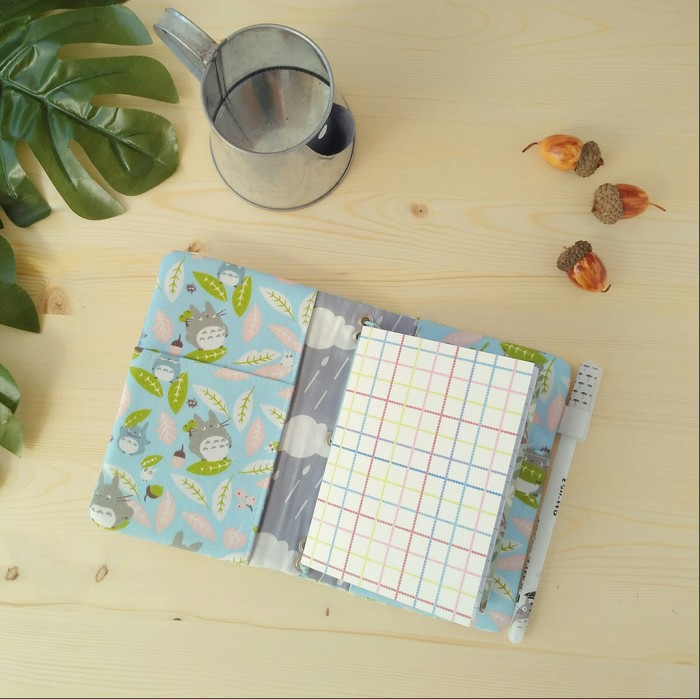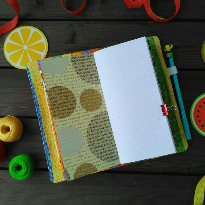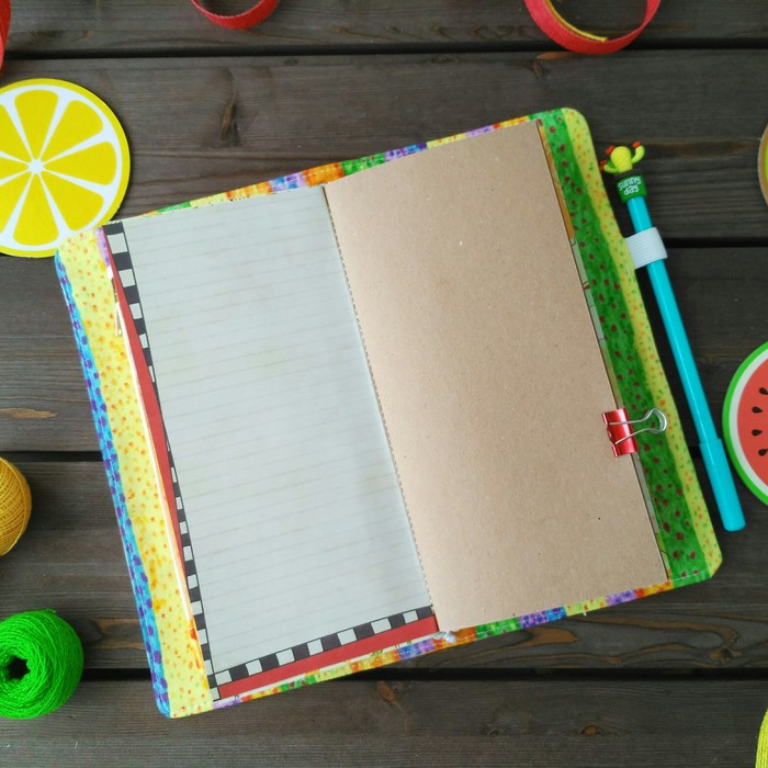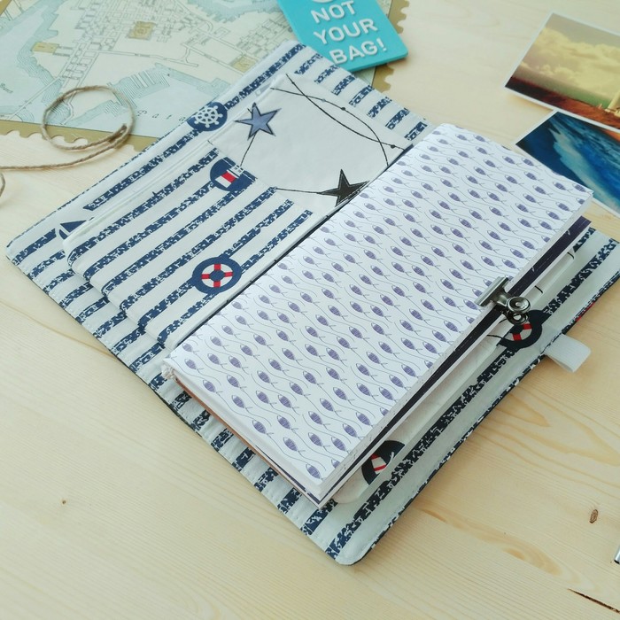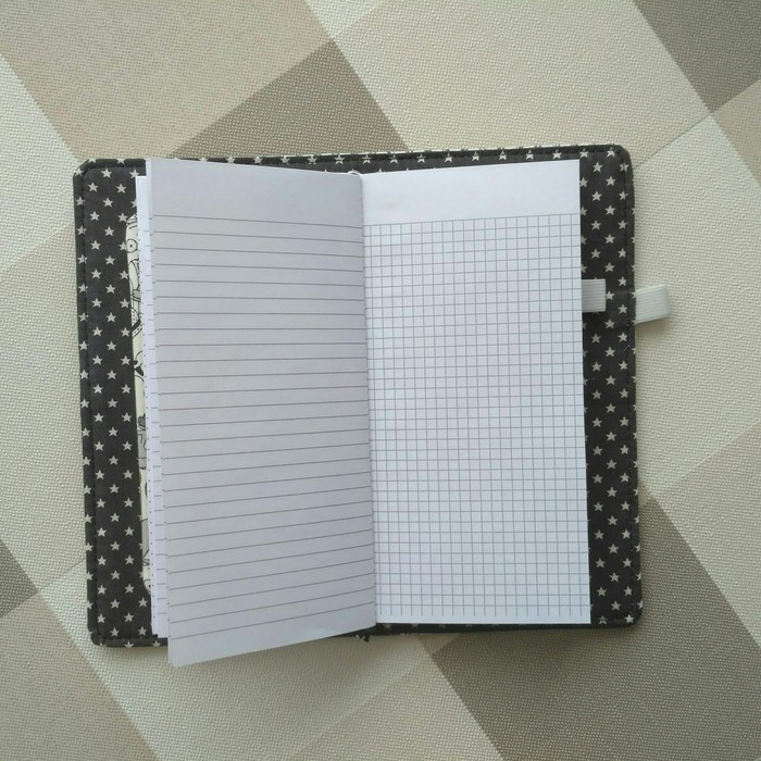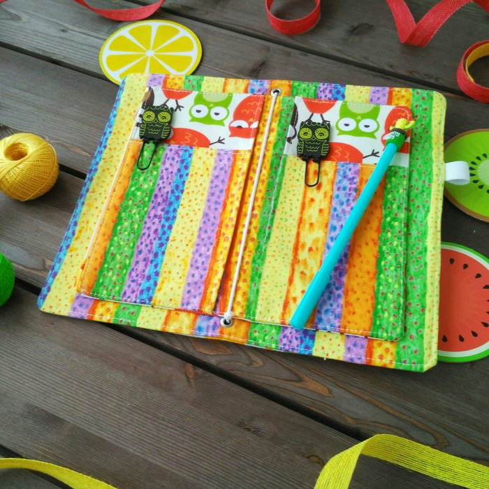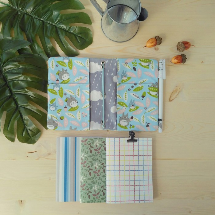 Попробовала другой размер для мидори - блокнотик формата А6, всего 15*10,5 см. Удобно носить в сумочке. Для такого малыша внутренний холдер будет напрактичным, ничего не положишь, поэтому карманы пришила прям на обложку, чтоб были повместительнее.