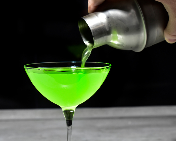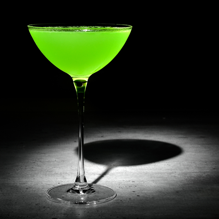 Сливаем ингредиенты в шейкер, взбиваем и переливаем в охлажденный коктейльный бокал без льда: