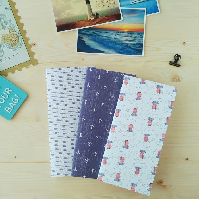 В одной из тетрадок использовала креативную линовку в виде волн, так как блокнот в морской тематике.
