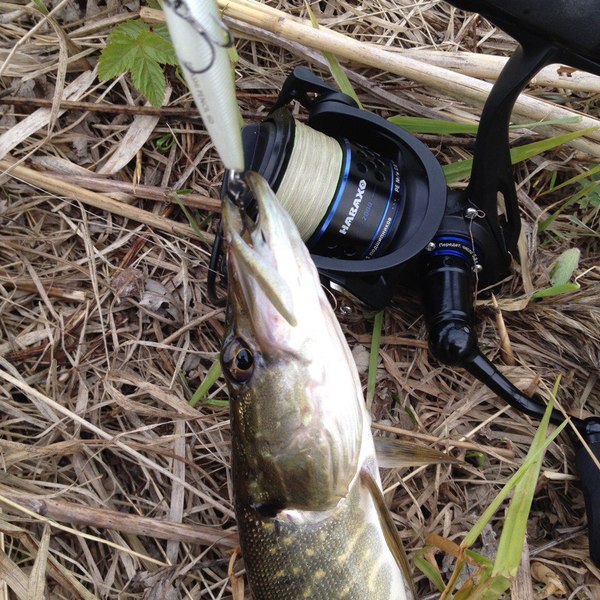 Крайний раз не повезло с хищником. С пяти утра прохлестал местный пруд всем, чем только можно: воблеры, вокеры, попперы, силикон, колебло... Рыба бастовала, а точнее партизанила! Ни всплеска, ни шевеления в траве. Как-будто вымерло все! Промотавшись по берегу вокруг пруда, встречая недовольных клевом спиннингистов, ушел в глухой коряжник с кустами. На очередном забросе, краем глаза заметил всплеск под кустами в стороне от меня... через пару секунд туда летит вокер и... мелкий "шнурок", промазав пару раз в атаке, вешается на приманку. План по поимке хищника выполнен. "Фото на память" и "шнурок" отправлен партизанить дальше.