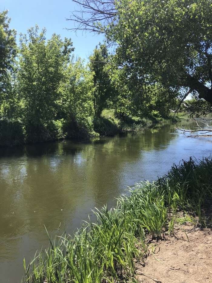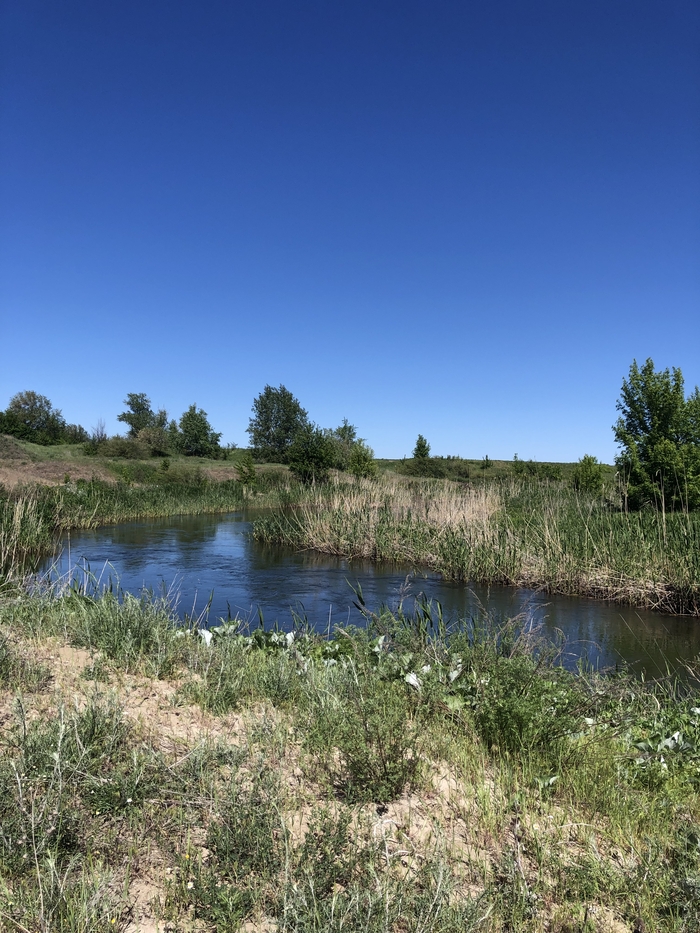 В воскресенье открыл для себя новую речку. Берега сильно заросшие, непролазные. Однако глубины почти нет и в вейдерсах можно гулять почти везде. Вода ледяная, но очень чистая.