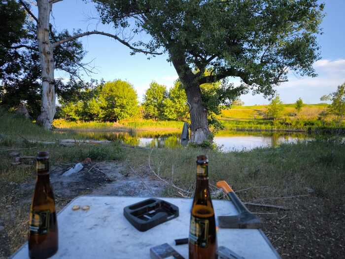 Место где на реке есть окунь я нашёл ещё загодя. Первое, что я сделал по приезду на реку, это комфортное расположение, стульчик в тень и чтобы волны накатывали на ноги, кайф....
