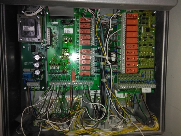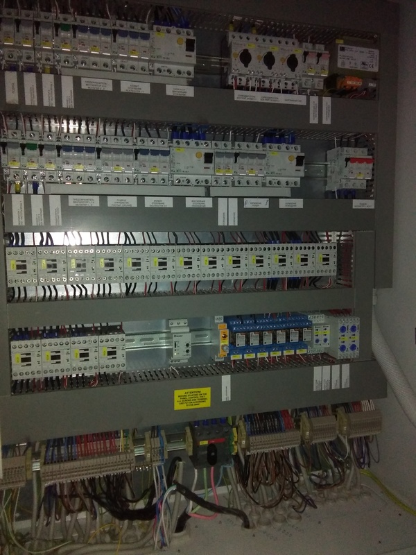Он же, вид изнутри. Через каждый автомат и пускател проходит сигнализация, если выбьет или отключешь - тоже будет пищать сирена))) На всем оборудовании стоит защита, включая УЗО.