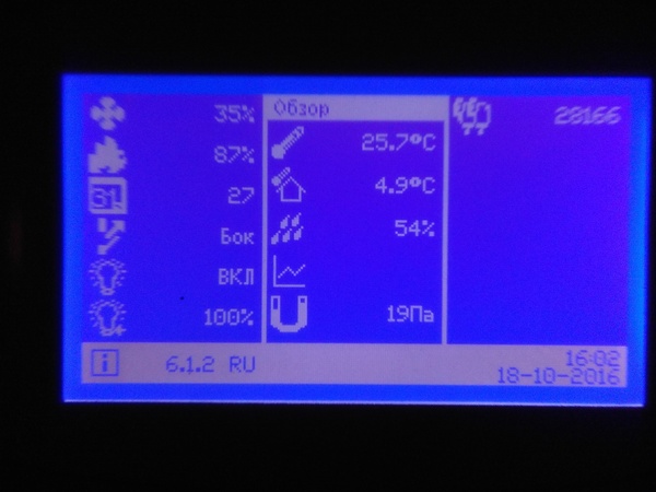 4)Боковой клапан (надо зайти в это меню, что бы увидеть, на сколько процентов они открыты)