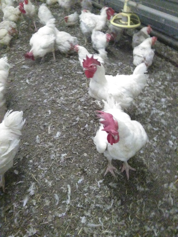 Ладно, хватит об этом))) Ну, растут птички на РМ до 24-х недель. Потом их отлавливают и быстренько перевозят в другие птичники Родительского стада (РС), где еще живут в полумраке несколько недель и они начинают нестись))) Так же, петушки по началу селятся в загоне отдельно, курочки ходят свободно. Только когда они начинают нестись - петухов выпускают на оплодотворение, и они там начинают адскую вакханалию, топчут все и всех, порой устраивая орнитологическое гэнг-бэнг пати, где количеству самцов на одну самку позавидовала бы сама Сашка Грей. Вот они, возрослые петушары. Так и норовит клюнуть тебя в любое место или покоцать своими шпорами, порой, нападают о 10-ти особей на тебя. Но я без метелки не хожу, они боятся подойти, когда у тебя в руках что то))) В целом, курочки с петушками живут тут 420 дней, потом, их отправляют на убой, очищают птичник, проводят наладку, дезинфекцию и т.д. примерно в течении двух недель, пока не подойдет следующая партия РМ. Всего РС птичников 12, а РМ 3. Они гораздо больше и просторнее, чем птичники с бройлерами, отличие по ширине)))